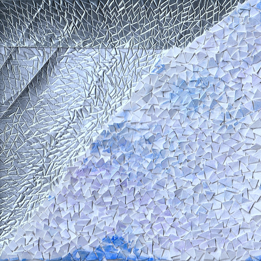 従来は均等なパーツを使うことが多かったのですが、今回はあえて無造作に切ることで、何ひとつ同じ形のない“不均等な自由さ”を表現しました。雪解け水のように、思考の緊張がほどけていく感覚を目指しています。