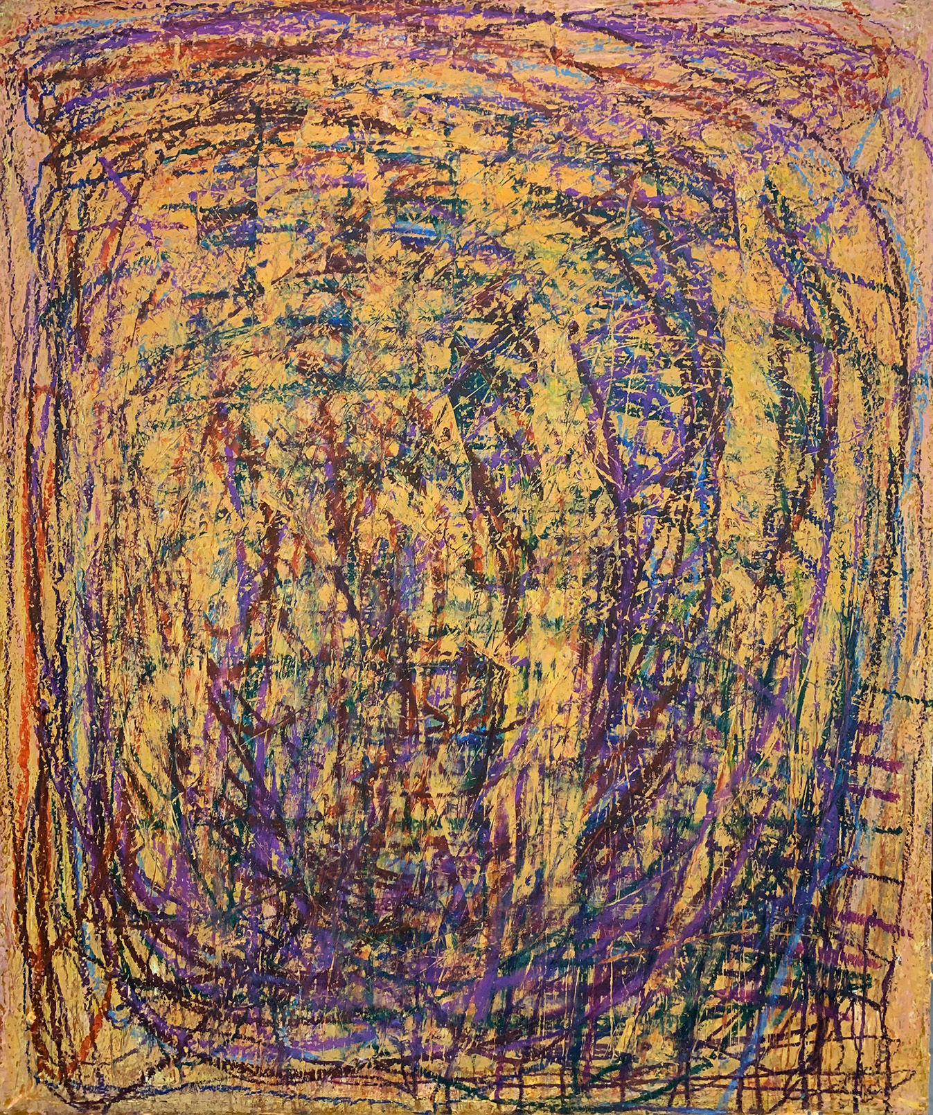 「アーピカル☆」は19年前、大阪市の「市民バリアフリー絵画教室」として始まり、2年後に代表の岡崎潤さんと前田美直子さんに引き継がれ現在に至る。明島は数少ない最初からのメンバーで、自閉スペクトラム症という特性がある。一般就労でプラスティック加工会社に勤め、その社長さんが、絵を描くのが好きな明島に教室を紹介したそうだ。「アーピカル☆」で描くのは、花・風景・建物・人物などのオーソドックスなモチーフが多い。検索画像をベースにした作品のほか、「レモンメロン」「グレンミラーレモン」といった不可思議なものもある。制作の合い間の息抜きに描いた新聞紙ペイントがまた傑作で、じつはこれが一番好きな作品だ。路線図の絵は自宅でしか描かないそうだ。鉄道関係のユニークな作品はほかにもいろいろある。さまざまな制作を場所と機会で分けながら多様な表現を生み出す明島。すべての制作が大切で必要なもの。あらためて人は多面体だということを感じる。