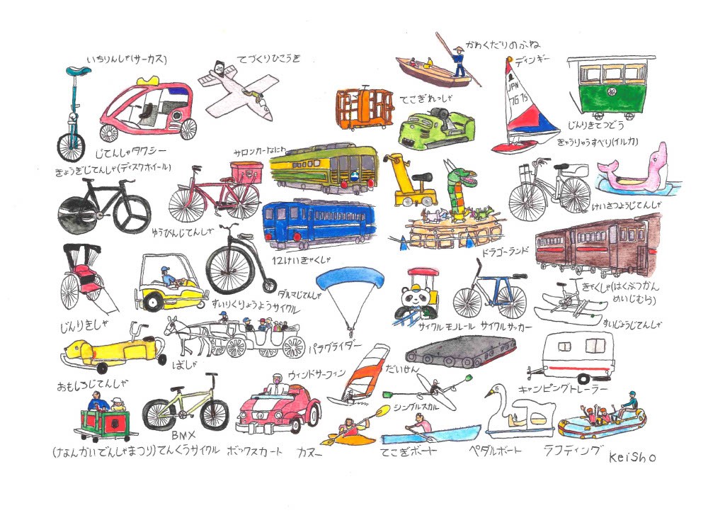 色鉛筆画や淡い色の水彩画、鮮やかで太い線のアクリル画も描く、独特の形の捉え方が楽しいアーティストだ。