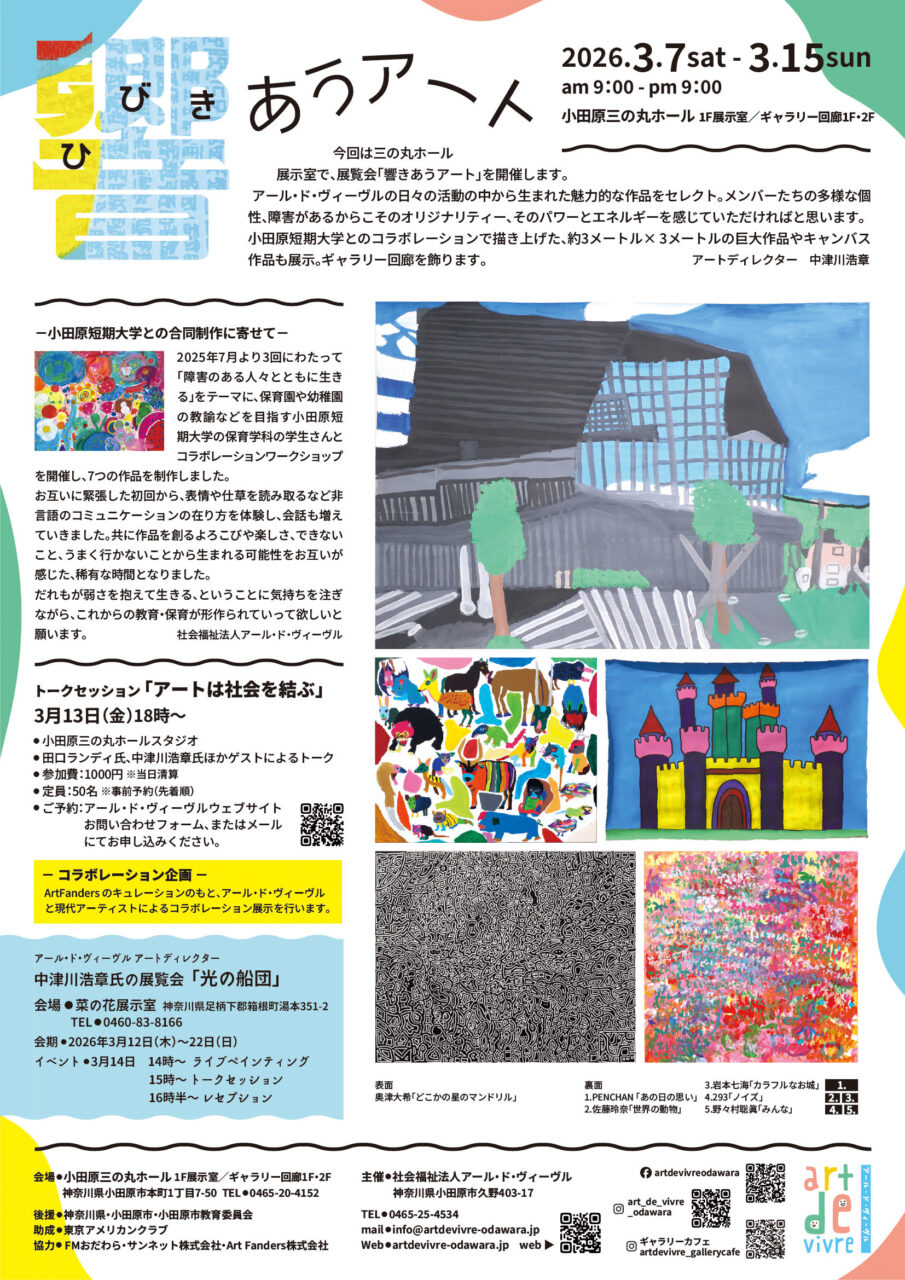 障害福祉サービス事業所「アール・ド・ヴィーヴル」で活動する仲間たちの作品を小田原三の丸ホールでご覧いただける展覧会が開催されます。
