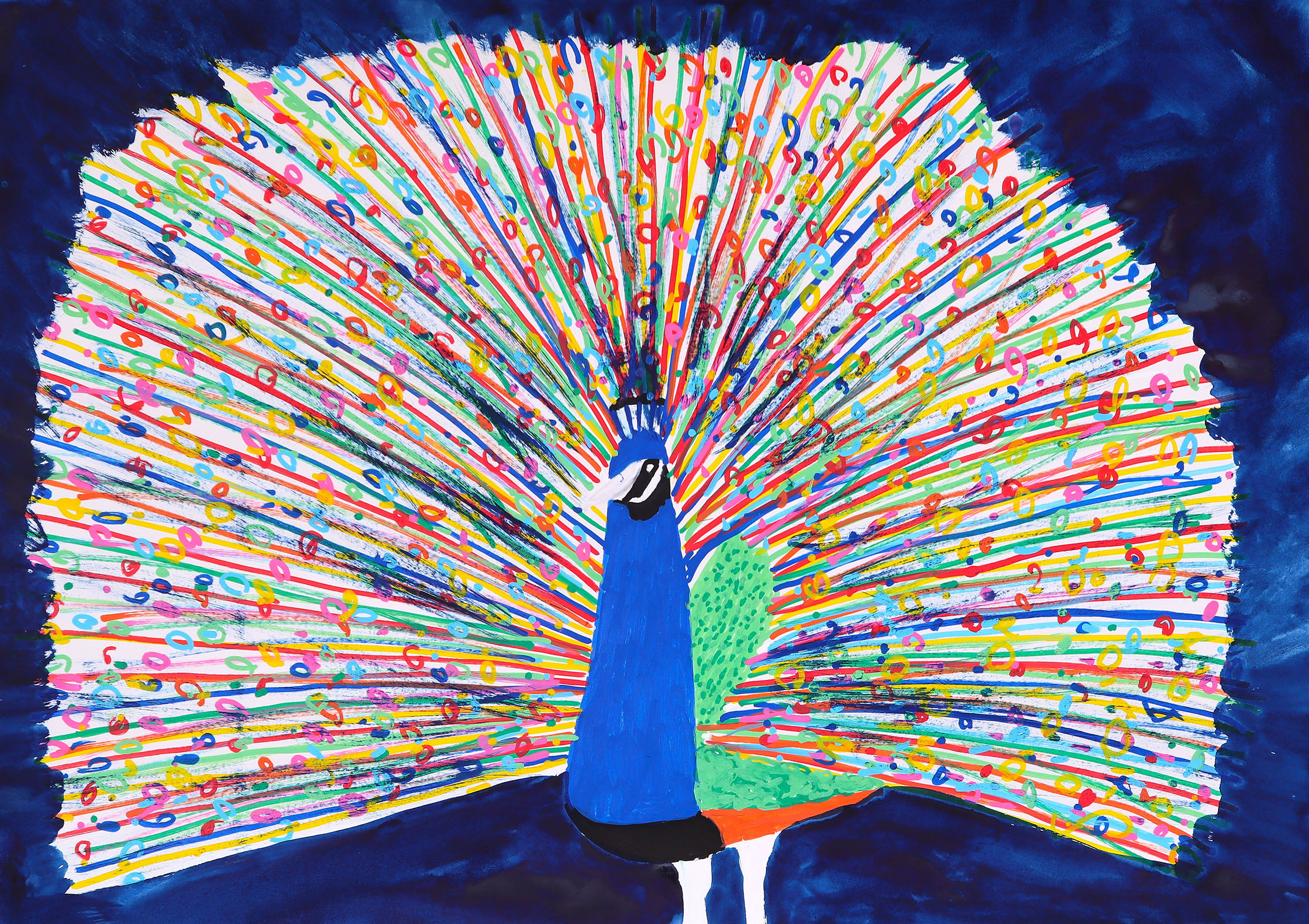 佐藤はかなり考えて描くタイプだ。障害がある表現者の多くは作品を組み立てるというよりも感覚的に表出するタイプが多いが、佐藤はそうではない。彼女なりに計算された画面づくりをしている。描きたいモチーフをどうやって表現するか。どんな支持体にしてどんな画材を使うのか。キャンバスか紙か。アクリル絵の具か水彩か。ペン、マッキー、ポスカ、鉛筆。カラフルな色彩かモノクロームか。濃く描きたければクレヨン、薄くしたいときは色鉛筆。筆を使わずに指で描いたり、作品によっていろいろな技法を意識的に使い分けてきた。