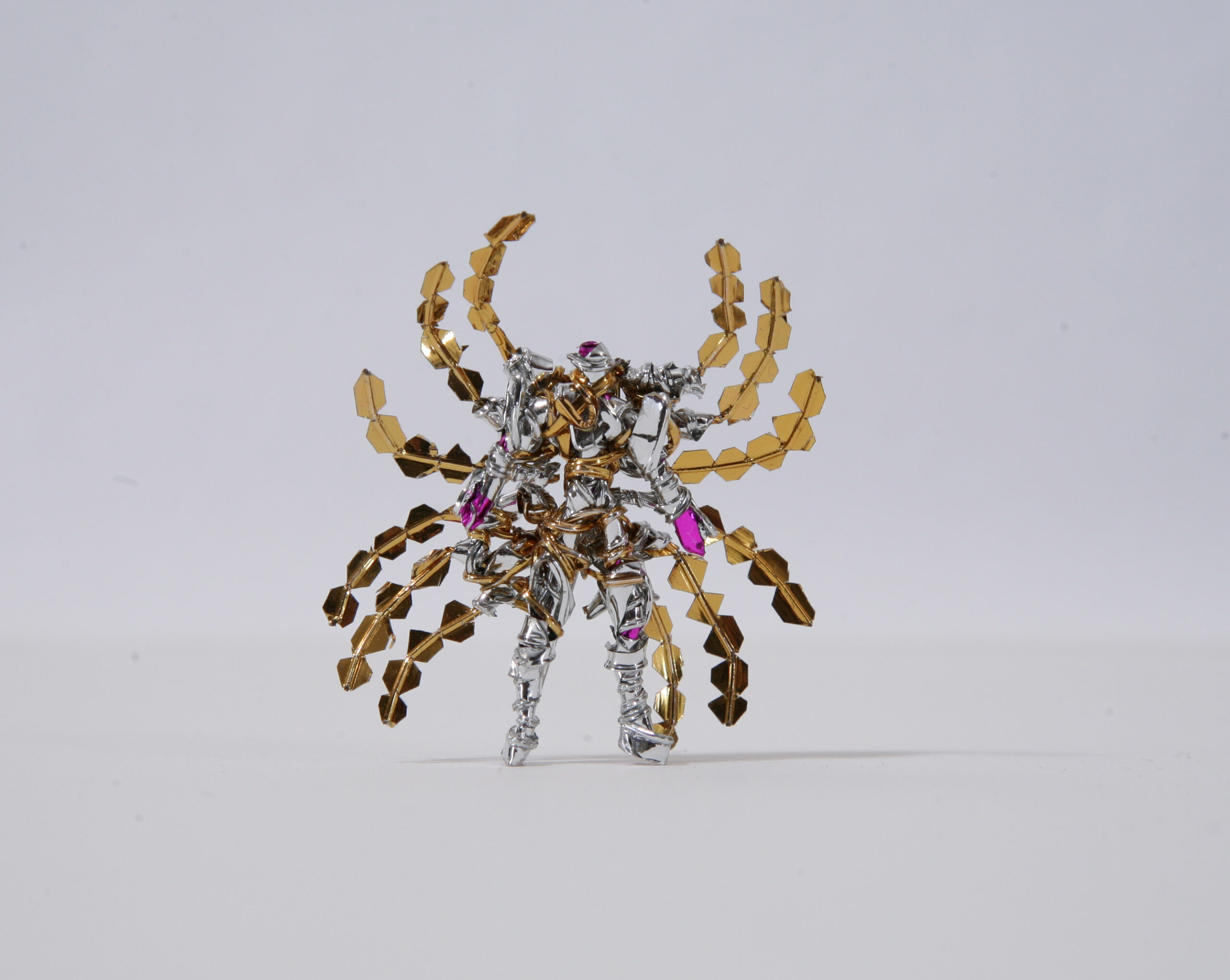 タオルの糸がこんな風にほどけるとは想像もしていなく、人の創造力にはほとほと驚かされる。器用な手つきで、一本ずつ、糸がほどかれていき、細く繊細な糸の塊となったオビジェに生まれかわっていく。この創作は、何かモノを創っているということよりも、熊谷がリラックスできる行為であるようだ。手先の器用さもさることながら、手元をまったく見ずに行っていることにも驚嘆する。